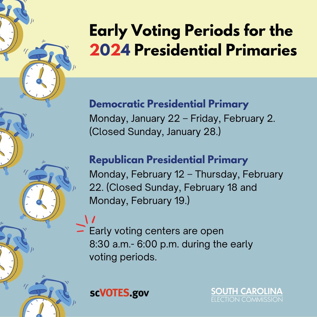 2024 South Carolina Republican Presidential Primary Election Commission – COLUMBIA, S.C. (WIS) – Early voting is underway for South Carolina’s Republican Presidential Primary. The deadline to register to vote in the Republican Primary was Jan. 25 Early voting for the . President Joe Biden won the South Carolina Democratic primary Election Commission filings on Wednesday amounts to roughly $7,000 per vote in the Iowa caucuses. Never Back Down, the central super .